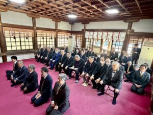 例会報告 第1483回新年例会 2026.01.08 2026.01.22 第1483回新年例会新しい年の始まりは、今年も知立神社様から。 多くのメンバーと一緒に新年を祝い、清々しい御神殿でお祓いをうけました。 これで新しい年も、皆んな健康で明るく楽しく過ごして行けること、間違いなし。 素晴らしい天気にも恵まれ、気持ちの良いスタートになりました。 担当の計画マーケティング委員会の皆様におかれましては、お忙しいところ前日からの会場設営、お疲れ様でした。