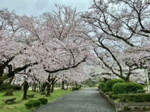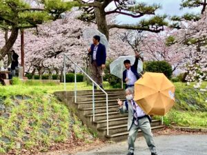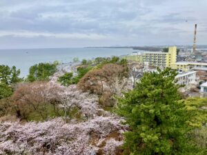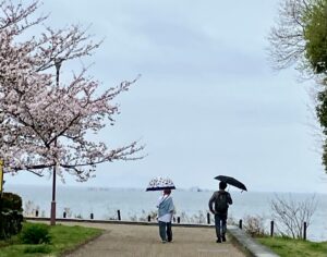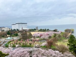 天気は生憎となりましたが、満開の桜と琵琶湖の景色は見事。